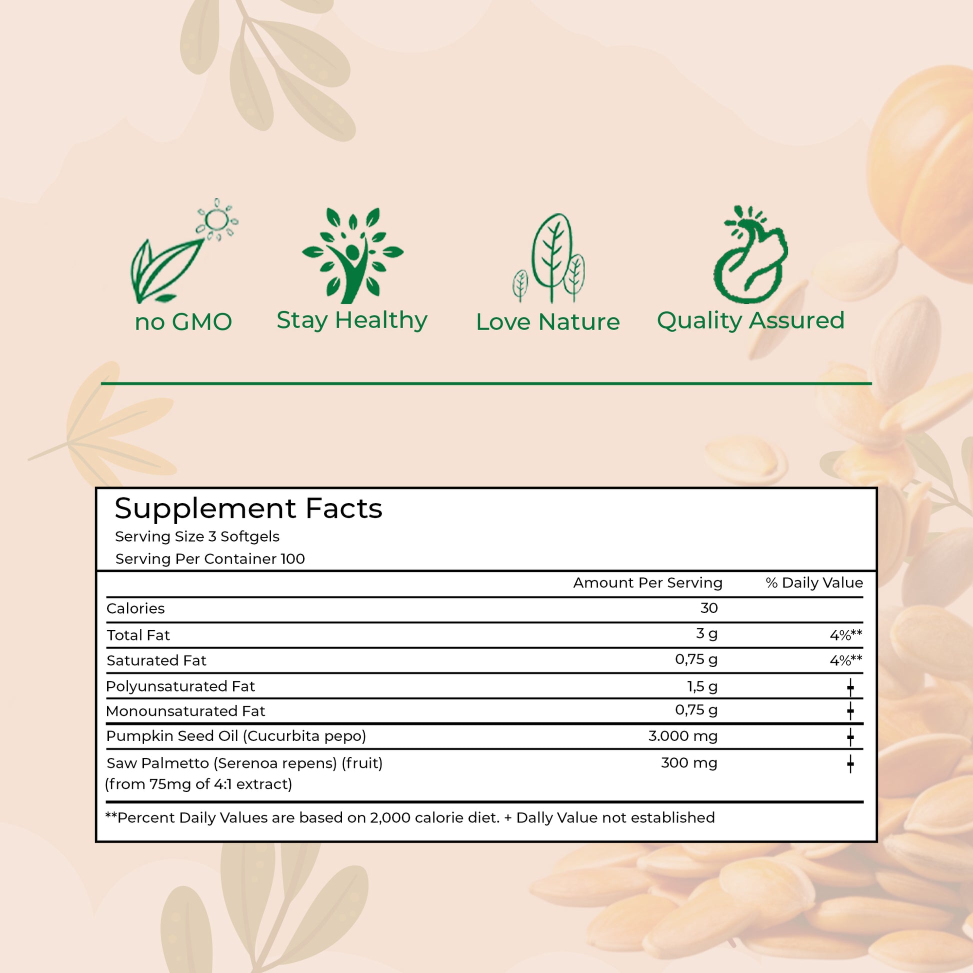 Organic Pumpkin Seed Oil is crafted from high-quality, cold-pressed pumpkin seeds to provide natural nourishment and care for hair and scalp. Known for its rich composition of essential fatty acids, antioxidants, and plant sterols, it helps maintain the appearance of healthy, strong, and shiny hair. The lightweight formula supports scalp balance and promotes natural vitality without leaving a greasy residue. Offered in a 300-count value pack, this product ensures long-lasting use and consistent quality, making it an ideal choice for those who value botanical-based hair care solutions.
